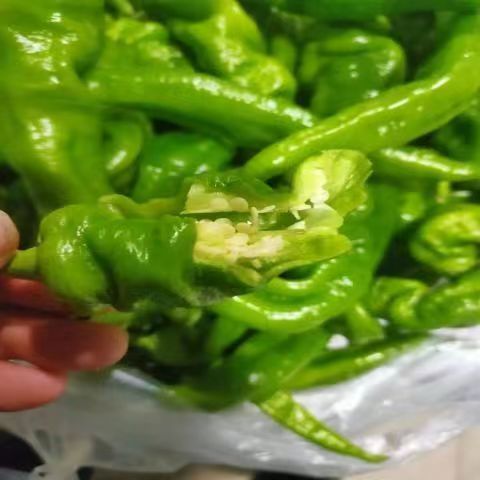Pepe di tigre con pelle di tigre appena raccolto peperoncino verde con buccia media piccante e sottile vite pepe zucca spedisce verdure fresche